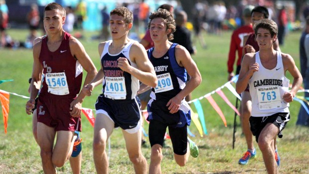 The Div. 1 race was a slugfest over the last 150 meters with Lowell's Johnny Abraham overtaking Peabody's Drew Fossa and holding on for the 15:52.3 win. Fossa was 10 meters back in 15:54.6 and Sam Conway of Minnechaug took third in 15:59.5. Cambridge sophomore Sam Stubbs nailed down fourth with a 16:01.4 and Wellesley's Tom D'Anieri was fifth in 16:04.8.